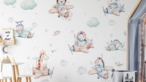 Wall stickers for children with animals, planes, balloons and dinosaurs